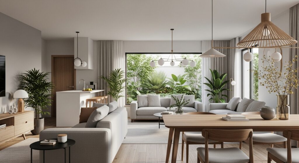 Dica 2: Integre cores das tendências 2025: neutros com pops de terracota ou verde para harmonia com paredes.